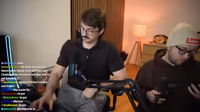 05:30:11Die Unterhaltung dreht sich um das Verständnis für das Spielfeldsetup. Der Streamer und sein Co-Host Kim verwechseln einen Meterstab mit einem Zollstock und führen eine lange, aber ironische Debatte über die korrekte Bezeichnung. Gleichzeitig klären sie technische Fragen des Streams, darunter das Blockieren von Kevin-Setups und die Verwirrung um die Verfügbarkeit anderer Streamer-Setups für den eigenen Stream.