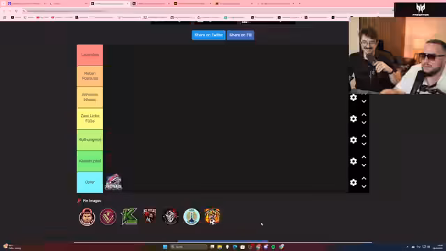 01:15:32Die Streamer entwickeln eine Tierliste für die Kings-League-Teams. Teams wie Footballista und Ära Colonia werden als potentielle "Opfer" bezeichnet, während Legenden und G2 als stark eingeschätzt werden. Es wird versucht, die Teams in verschiedene Kategorien wie "Opfer", "kultige Coaches" und "dabei" einzuordnen. Bei den Coaches wie Mario Götze und Ebru wird der Mehrwert bezweifelt, da sie scheinbar nichts mit Fußball zu tun haben. Die Teams werden in der Liste neu angeordnet und ständig angepasst.