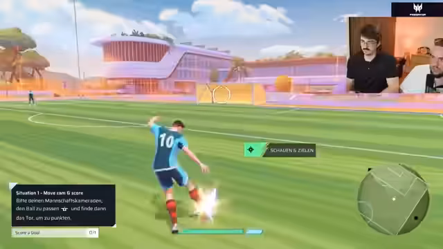 02:20:12Die Spieler starten in das Spiel, das offenbar mit dem Elfer geendet hat. Sie kommunizieren über die Steuerung, wobei Linksklick zum Schießen und Rechtsklick zum Passen dient. Ein Kamerabug sorgt für Frustration, da der Spieler nur eingeschränkt blickt und sich nicht weit vom Ball entfernen kann. Trotzdem wird das Spiel als „geil“ und „krank“ empfunden, mit vielen ansprechenden Spielzügen und einem hohen Motivationslevel im Team.