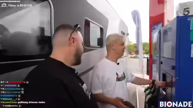 02:57:39Nach der Ankunft in Köln wird das beworbene weiße Edeltop-Shirt erwähnt, das als limitierter Artikel im Shop erhältlich ist und nicht mehr in großer Stückzahl verfügbar ist. Der Streamer spricht die Chat-Teilnehmer direkt an, begrüßt sie und tauscht sich über die Ankunft und weitere Pläne aus. Die Rahmenhandlung des Streams ist eine Wohnmobil-Tour durch Großbritannien, bei der das Fahrzeug vom Partner Caravaning Info zur Verfügung gestellt wird.