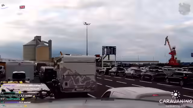 00:24:32Während der Fahrt zur Fähre, die pünktlich um 17:20 Uhr erreicht werden muss, laufen diverse Stream-Interaktionen ab. Dazu gehören das Vorstellen der Live-Kameras, insbesondere der neuen Außenkamera, und das Vorlesen von Kommentaren aus dem Chat. Zudem werden wiederholt Gewinnspiele beworben und das neue Merchandise präsentiert. Die Atmosphäre ist entspannt und auf das bevorstehende Abenteuer ausgerichtet.