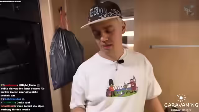00:13:08Das Wohnmobil wurde vom Partner Caravanning.info gestellt, einem Verband, der Wohnmobiltouren für junge Leute bewerben möchte. Im Rahmen der Kooperation wird ein Giveaway im Wert von 1.500 Euro verlost, eine komplette Edeltour. Zudem können Zuschauer Merchandise-Artikel wie Hoodies und T-Shirts gewinnen, die im Stream-shop erhältlich sind und schnell ausverkauft sind. Die Zusammenarbeit soll das Thema Wohnmobilreisen für eine jüngere Zielgruppe attraktiver machen.