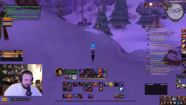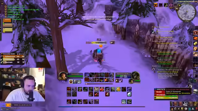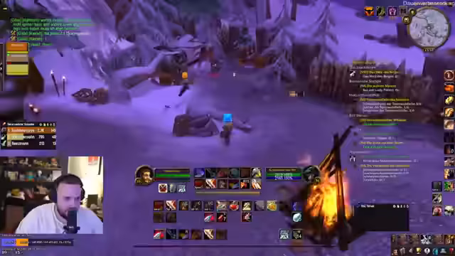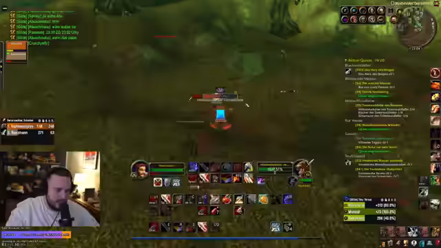 03:55:48Nach der langen UI- und Konfigurationsphase versucht der Streamer, seinen Quest-Fortschritt in World of Warcraft voranzutreiben. Er findet jedoch kaum Mitspieler auf seinem Level und im Zielgebiet, was ihn frustriert. Er bittet seinen Chat um Hilfe bei der Orientierung im Gebiet und sucht nach Gruppen für gemeinsames Questen. Der fehlende Gruppenspiel wird als Hemmschuh für den Progress gesehen, da das Spiel alleine als anstrengend und "geisteskrank" empfunden wird.