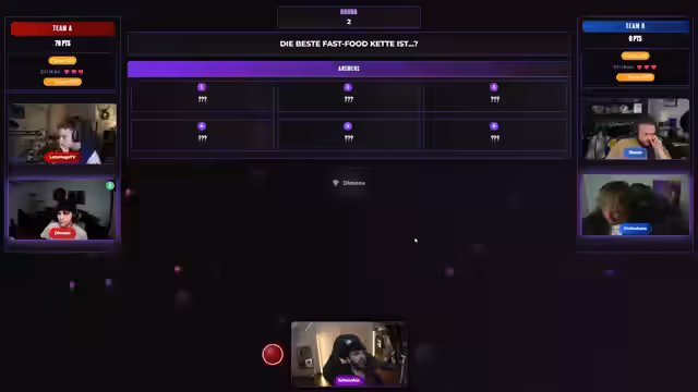 02:56:55Die dritte Runde des Chat-Duells dreht sich um die beste Soße zu Fischstäbchen, wobei Ketchup, Remoulade und Mayo genannt werden. Überraschenderweise wird auch 'keine Soße' als beliebte Antwort genannt, was zu Diskussionen über die Interpretation der Fragen führt. Die vierte Runde fragt, welcher Streamer am ehesten einen Türkei-Urlaub benötigt, und Hugo wird mit überwältigender Mehrheit genannt, was auf ein internes Meme anspielt. Die Spieler müssen die Denkweise des Chats nachvollziehen, um die populärsten Antworten zu erraten und Punkte zu sammeln, was das Spiel unvorhersehbar und unterhaltsam macht.