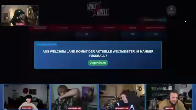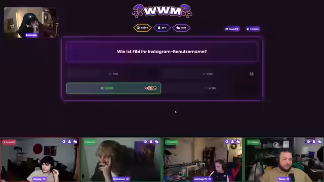 02:04:05Das Quiz setzt sich fort mit einer Mischung aus Popkultur, Latein und Physiologie. Fragen zur Anzahl der Zähne eines Erwachsenen und zum goldenen Ticket aus 'Charlie und die Schokoladenfabrik' werden gestellt. Die Bedeutung des lateinischen Mottos 'Veni, vidi, vici' wird abgefragt, wobei ein Teilnehmer Schwierigkeiten hat. Eine Frage zu 'Flatulenzen' führt zu einer humorvollen Diskussion. Der Instagram-Benutzername von Phoebe und die Gesamtheit der Erbanlagen ('Genotyp') sind weitere Themen. Die Runde wird von Diskussionen über die Schwierigkeit der Fragen und die unterschiedlichen Wissensstände der Teilnehmer geprägt.