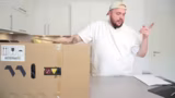 00:46:50Nach einem kurzen Prank mit einer leeren Kiste wird der eigentliche PC-Transportkarton geöffnet. Der Streamer hebt den schweren und sorgfältig verpackten Rechner aus dem Karton. Er präsentiert die hochwertige Verarbeitung des Gehäuses, insbesondere die Holzfront im Pillow-Stil, und zeigt die umfangreichen Dokumentationen von Alternate, die vom Aufbau über die Anschlussbelegung bis hin zur korrekten Sitzhaltung alles detailliert erklären. Dies unterstreicht die professionelle und benutzerfreundliche Herangehensweise des Herstellers.