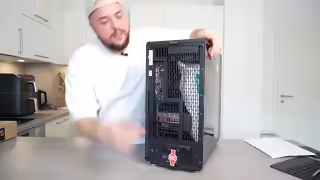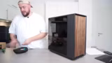 01:02:36Der Fokus verlagert sich auf die Inbetriebnahme. Zunächst wird das Seitenpanel des Gehäuses vorsichtig abgeschraubt, um den Zugang zum Inneren zu erhalten. Die besondere Aufmerksamkeit gilt dem Transport-Schaumstoff, der sich perfekt an die Innenkomponenten angepasst hat, um sie bei der Lieferung zu schützen. Dies wird als Beweis für die extreme Sorgfalt in der Verpackung hervorgehoben. Anschließend wird das Glaspanel wieder befestigt, wobei der Streamer besonderen Wert auf einen sanften und schonenden Umgang legt, um keine Kratzer zu verursachen.