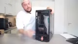 00:55:38Nachdem der PC aus seiner schützenden Transportschale befreit ist, zeigt der Streamer seine beeindruckende Innenausstattung. Betont wird die enorme Größe der Grafikkarte, die knapp an der Gehäusegrenze messen, sowie der massive CPU-Kühler mit seinen drei Lüftern. In diesem Moment drückt der Streamer seine Dankbarkeit gegenüber Alternate aus. Er preist die einfache, schnelle und kompetente Kommunikation und betont, dass der neue Rechner ihn von weiteren '30 FPS Minecraft Sessions' retten wird und seine Produktivität enorm steigern wird.