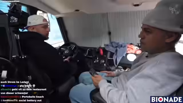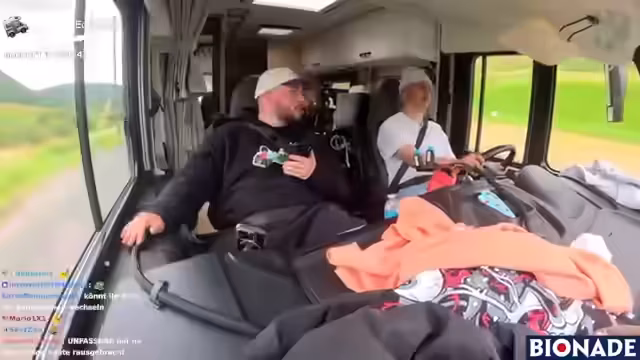 00:32:22Bei der Vorbereitung der Abreise nach Edinburgh stellte sich heraus, dass die Autoschlüssel verschwunden waren, was für kurze Unruhe sorgte. Nach der erfolgreichen Suche wurde das Wohnmobil für die Abreise vorbereitet: Alle Fenster geschlossen, Landstrom abgeschaltet und gasmäßig alles kontrolliert. Die Streamer fuhren Edinburgh an, wobei Miguel auf dem Dach positioniert war, um mit der Kamera die Fahrt aufzuzeichnen. Unterwegs gab es technische Probleme mit dem Bildschirm des Streamers, der aufgrund von Vibrationen ausfiel.
