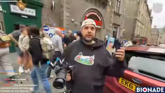 04:22:07Die Gruppe steht kurz vor ihrem Ziel Edinburgh und muss eine Lösung für die Übernachtung finden. Als letztes Backup planen sie, auf einem Lidl-Parkplatz zu übernachten, nachdem sie keinen Campingplatz mit Dusche gefunden haben. Die Streamer sind über diese skizzenhafte Lösung nicht begeistert, sehen aber keinen anderen Ausweg. Sie erreichen schließlich Edinburgh und suchen nach einem geeigneten Ort, um ihre Kaffeepause zu machen, bevor sie den Kilt-Laden besuchen.