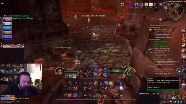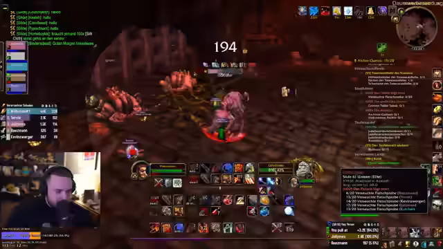 01:15:17Es wurden Hilfsanfragen für WoW-Quests geprüft, insbesondere für Julia, die möglicherweise Unterstützung bei einer Quest benötigt. Nachdem geklärt wurde, dass dies nicht zeitnah möglich ist, beschäftigte sich der Streamer mit einer eigenen Diplomaten-Quest im Sumpfland, bei der er Dominik um Hilfe bat, um NPCs nicht allein bekämpfen zu müssen. Parallel dazu wurde der Aufbau einer Gruppe für einen Dungeon um 21 Uhr besprochen, wobei Dominik, Juli und weitere Spieler teilnehmen sollten.