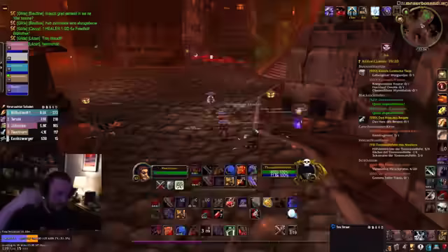 02:07:18Nach Vorbereitungen wie dem Teilen von Quests dem Erreichen des Treffpunkts ging es los in den 'Strat'-Dungeon. Es wurden die Gefahren des Gebiets angesprochen, insbesondere der 'Arschverschlinger', der für erhebliche Frustration sorgte. Beim Eintritt in den Dungeon wurde der Streamer von der Gruppe allein gelassen, was ihn in Gefahr brachte. Die Gruppe bestand aus mehreren Priestern, darunter 'Fahna' und 'Suki Dingels', aber es wurde die Sorge geäußert, dass die Anzahl der Heiler für den Dungeon möglicherweise nicht ausreichen könnte.
