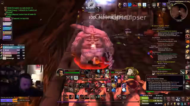 02:13:37Im Mittelpunkt des Streams stehen verschiedene Herausforderungen und Fehlschläge bei der Bewältigung von Dungeons. Der Streamer berichtet über eine Situation, in der er einen Heilzaug spät erhalten hat, obwohl er angezeigt wurde. Beim Dungeon Thunderstrike wird die strategische Pull-Planung thematisiert, wobei technische Lautstärkeprobleme den Dialog zwischen den Spielern beeinflussen. Die Kämpfe als solche werden als schwierig und hektisch beschrieben, insbesondere beim Endboss, der zwei Heilige erforderte, was als 'übel' eingestuft wurde.