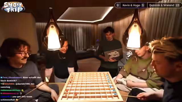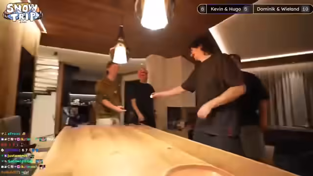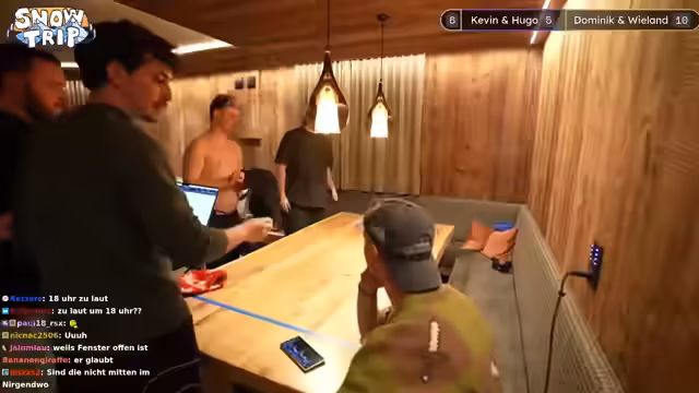 03:12:38Nach einer spannenden Entscheidung im Trocken-Curling, bei der die Entfernung mit einem Lineal gemessen werden muss, gewinnt ein Team die gesamte Runde des Snow Trips. Der Streamer verkündet, dass es sich um eine Folge eines Podcasts handelt. Für den nächsten Tag, bei gutem Wetter, ist ein Besuch eines professionellen Athleten geplant und weitere Spiele wie Becci angekündigt. Der Stream endet mit einem Dank an die Zuschauer und einem Verweis auf den morgigen Start um 10 Uhr.