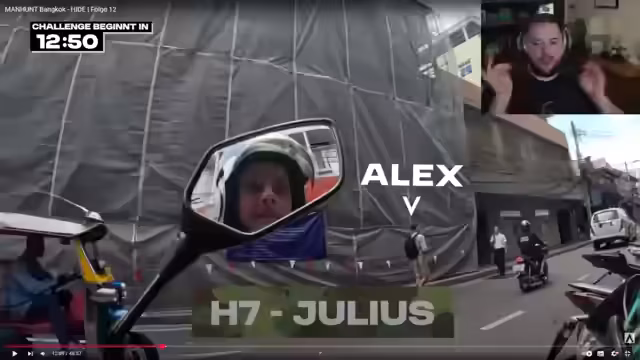 03:21:40Der Streamer befindet sich in Bangkok und verfolgt den Zielteilnehmer Carsten. Er beschreibt dessen Bewegungen und die aktuellen Suchstrategien. Carsten hält sich laut dem Streamer vermutlich an Orten mit Klimaanlage auf, wie in Einkaufszentren. Der Streamer berichtet von seiner eigenen Unsicherheit und der unübersichtlichen Lage, besonders als er in eine unheimliche Zone mit potenziell gefährlichen Tieren vordringt, die ihm Unwohlsein bereitet. Die Jäger haben bisher noch keinen Speedhunt ausgelöst, was den Streamer nervös und ungeduldig macht.
