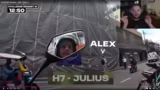 04:09:46Ein Speedhunt wird ausgelöst, nachdem die Jäger den genauen Standort von Spieler Chris ausgemacht haben. Willi fährt per Roller zu ihm und führt einen Tornado Kick aus, woraufhin Chris überwältigt und gefangen wird. Der Streamer kommentiert die Szene live, ist sichtlich begeistert von der gelungenen Aktion und lobt Willis Einsatz. Die Fangmeldung löst im Chat große Aufregung aus und endet mit dem Ausspruch GG.