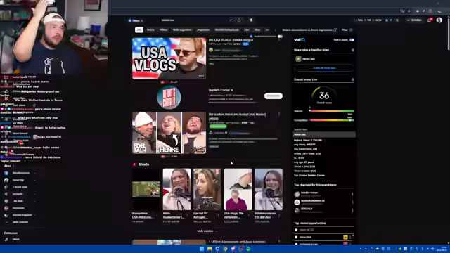 00:34:17Nach den Reiseerzählungen kündigt der Streamer an, dass nun der eigentliche Hauptinhalt beginnt: die XXL-Werwolf-Reaktion. Als Aufwärmer schauen sie jedoch erst den lang erwarteten Vlog von Henke über die gemeinsame USA-Reise. Der Streamer ist begeistert, dass Henke den Vlog nach jahrelangen Versprechen nun endlich umgesetzt hat und lobt die authentischen Einblicke.