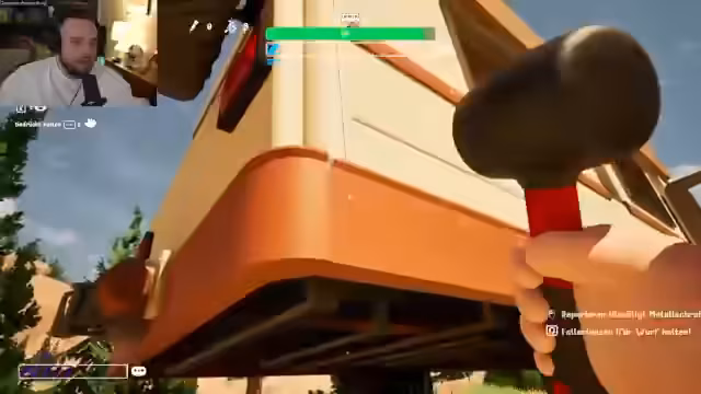 02:28:06Am Anfang des Streams konzentriert sich das Team auf das Ausrüsten des Wohnmobils. Es werden Gegenstände wie Bier, Nuggets und Grill mitgenommen. Außerdem wird ein Windenmast als Werkzeug zur Reparatur genutzt. Während der Vorbereitung kommt es zu ersten technischen Problemen, da das Wohnmobil eine Beule hat und der Starter repariert werden muss. Während der Fahrt wird Metallschrott als wichtiger Rohstoff für Reparaturen eingesammelt und das Team macht sich auf den Weg zur ersten Tankstelle.