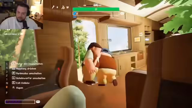 01:56:18Der Stream wechselt das Setting und das Team spielt ein Videospiel, in dem sie ein Wohnmobil steuern. Nach einem anfänglichen Kampf mit technischen Problemen, insbesondere der Soundeinstellung, beginnt das Spiel. Die Protagonisten unterscheiden ihr Inventar gründlich und stellen fest, dass sie viele nützliche Gegenstände wie eine Winde, einen Akkubohrer und Grillutensilien besitzen.