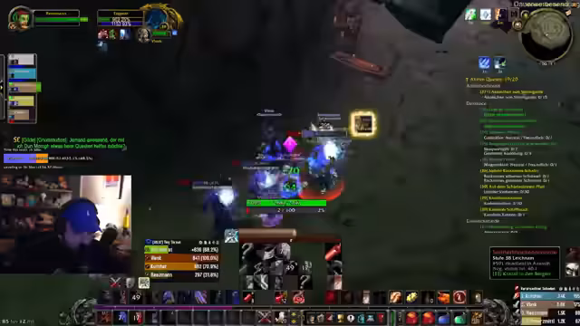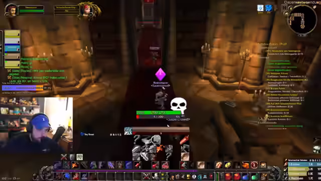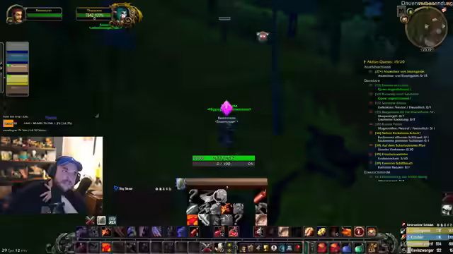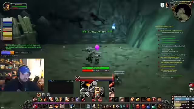 07:40:23Zu Beginn desChunks diskutiert der Streamer über die Wahl einer passenden Hintergrundmusik für den Stream, die sich als Hintergrundgeräusche oder Menümusik eignet. Er erwägt lange Songs, Alben als einen einzigen Song oder Ambient-Musik. Parallel dazu konzentriert er sich auf das Gameplay im World-of-Warcraft-Dungeon, wobei er sich speziell mit den Fähigkeiten seines Krieger-Charakters beschäftigt. Er muss entscheiden, ob er einen kleineren, schnelleren Heilzauber oder den vollständigen Heilzauber einsetzen soll, um Mana zu sparen, was sich für ihn kriminell anfühlt, aber strategisch sinnvoll ist. Die Mechanik des Ziels mittels Mausklick als ungewohnt und schwierig beschrieben.