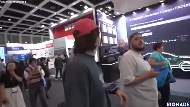 00:03:29Der Stream beginnt auf der IFA Berlin, der großen Technologie-Messe in Deutschland. Das Ziel der Streamer ist, die Messe unsicher zu machen, spannende Technologien zu erkunden und einen tollen Tag mit dem Chat zu verbringen. Sie haben keine konkreten Pläne und erkunden die Hallen spontan. Zu Beginn sind sie zufällig im riesigen Samsung-Stand und beobachten Roboter und verschiedene Produkte, wie einen großen Staubsaugerroboter. Der Fokus liegt auf der Erkundung und dem Abgreifen von Gratis-Samples.
