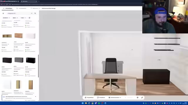 00:53:21Der Streamer setzt den Umbau seines Streaming-Zimmers fort und zeigt den Zuschauern die exakten Maße seines Zimmers, die er vorher auf seinem Handy notiert hat. Er versucht im Ikea-Planer, die genauen Möbel aus seiner aktuellen Einrichtung zu platzieren, stößt aber auf Schwierigkeiten, da die genauen Modelle nicht verfügbar sind. Stattdessen nutzt er ähnliche Möbel als Stand-ins. Der Chat ist aktiv in den Planungsprozess involviert und macht Vorschläge während der Streamer die Kommoden, Schränke und den Schreibtisch im virtuellen Raum platziert.