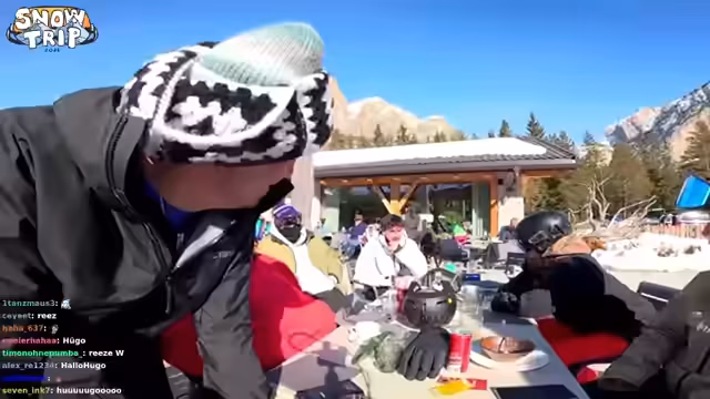 06:20:00Ein Finger des Streamers ist verletzt, da ihn Hugo auf der Rodelpiste umgefahren hat. Dies führt zu einer Unterhaltung über alte Verletzungen, wie den gebrochenen Rücken bei einem Cliff-Diving-Unfall. Gleichzeitig wird bereits ein Plan für den Folgetag geschmiedet, der粉末ige Pisten Powderstrecken und das Fahren abseits der Pisten, Offroad, vorsieht, was als extrem anspruchsvoll beschrieben wird.