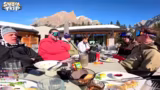 04:22:17Auf der Rückfahrt stellt sich heraus, dass das Motorrad des Teams eingefroren ist und nicht mehr startet. Nachdem sie erfolglos versuchen, das Problem zu beheben, und anfangs planen, das Rad zu schieben, geht es plötzlich doch wieder. Anschließend kommen sie bei der Talstation an und die Gruppe kommt wieder zusammen. Sie sammeln sich und bereiten sich darauf vor, die Tour erfolgreich abzuschließen, während sie sich über die unvorhergesehene Wendung amüsieren.