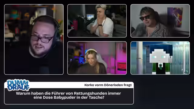 02:36:52Es beginnt mit einem Quiz, bei dem Hauptstädte verschiedener Länder erraten werden müssen. Dabei werden Anekdoten über Glücksspiel erzählt, wie die Redewendung 'kalte Füße bekommen' entstand. Es wird ein Clip für TikTok angekündigt. Es folgen weitere Quizfragen zu Hauptstädten und Flaggen österreichischer Bundesländer. Anschließend wird eine Frage von Pobi aus dem Büro zum Thema Minigolf gestellt, nämlich was ein Lochsponsor ist, was zu einer Diskussion über Sponsoring im Golfsport und Minigolf führt. Abschließend wird eine Frage von Korko vom Dönerladen gestellt: Warum haben die Führer von Rettungshunden immer eine Dose Babypuder in der Tasche? Es wird spekuliert, ob es mit Wundversorgung, Neutralisierung von Gerüchen oder dem Abdecken falscher Fährten zu tun hat. Die Community rätselt mit und liefert kreative, aber falsche Lösungsansätze.
