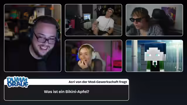 01:10:37Es wird über Hintergründe im Stream gesprochen und wie oft diese gewechselt werden sollten, um die Zuschauer zu unterhalten. Der Streamer kündigt an, mit dem 'Cover-Platte-Intro' zu beginnen, da die Zuschauer darauf warten. Nach dem Intro folgt eine Begrüßung der YouTube-Zuschauer zu einer Game Show mit Freunden, einschließlich Basti. Dominik Rexmann übernimmt die Moderation und begrüßt die Zuschauer zu einer weiteren Episode von 'Dumm drauf', wobei er die Wortschöpfung lobt. Das Team, bestehend aus Kevin, Kroko, Merle und Basti, wird vorgestellt, wobei jeder drei kurze Fakten über sich preisgibt. Anschließend werden Rätsel und Fragen von Zuschauern angekündigt.