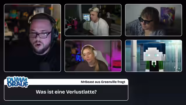 01:39:42Nach der Auflösung des ersten Rätsels wird die nächste Frage von MrBeast aus Greenville gestellt: Was ist eine Verlustlatte? Es wird spekuliert, ob es sich um einen medizinischen Begriff für Erektionsstörungen handelt. Die Diskussion dreht sich um die Frage, ob die Verlustlatte eine Unterlage ist, die beim Verarbeiten und Bearbeiten anderer Dinge Verlust erleidet. Es wird vermutet, dass es sich um eine Holzlatte handelt, die unter das zu bearbeitende Holzteil gelegt wird, um Schnittspuren zu vermeiden. Die Diskussion geht dahin, dass die Verlustlatte etwas mit dem Schutz zu tun hat und als verlängerter Arm dient, um Holz schneiden zu können.