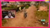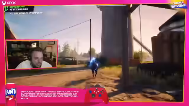 00:37:20Die erste offizielle Challenge des Colorful Showdowns ist das King-of-the-Hill-Minispiel in Goat Simulator 3. Der Streamer und Wieland müssen die riesige Karte erkunden, um die Spielposition zu finden. Das Spiel wird zu einer chaotischen Aktion, in der sie verschiedene Objekte und Personen mit Zungenangriffen überfahren und zerstören, anstatt das eigentliche Ziel zu finden. Nachdem sie die Karte gründlich unsicher gemacht haben, wird der Chat um Hilfe gebeten, um die versteckte King-of-the-Hill-Lokation zu lokalisieren.