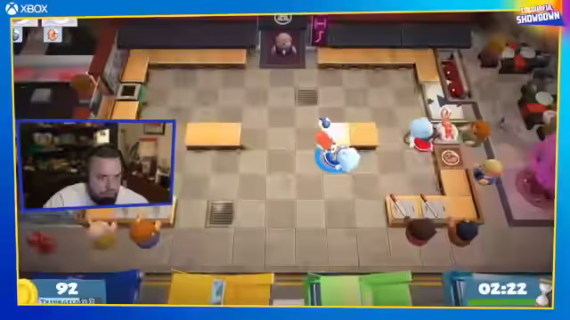 01:49:05Nach einem weiteren Szenenwechsel wird eine neue Challenge gestartet, bei der die Spieler ihre coolsten Stunts präsentieren müssen. Ein Timer erfasst die Performance, was zu Hektik führt. Der Streamer ist überzeugt, den cooleren Stunt gemacht zu haben, fühlt sich aber vom Operator benachteiligt. Anschließend wechseln sie zu Overcooked, aber es treten massive technische Probleme auf. Die Spieleinladungen funktionieren nicht und der Streamer muss die Steuerung von Tastatur/Maus auf Controller umstellen.