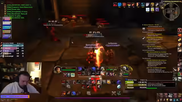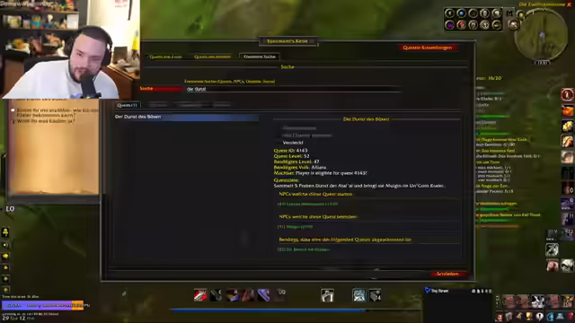 04:50:18Die Gruppe begibt sich in den Lower Blackrock Spire (LBRS), um dort Quests abzuschließen und NPCs zu eliminieren. Es werden klassenspezifische Quests erwähnt, die jedoch scheinbar nicht von allen Gruppenmitgliedern gleichzeitig angenommen werden können. Der Streamer interagiert intensiv mit seinem Chat und holt sich Rat von einem als 'WoW-Pro' geltenden Nutzer, um sich über Spielmechaniken zu informieren und mögliche Fehler zu vermeiden.