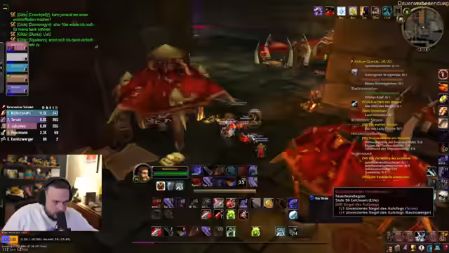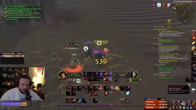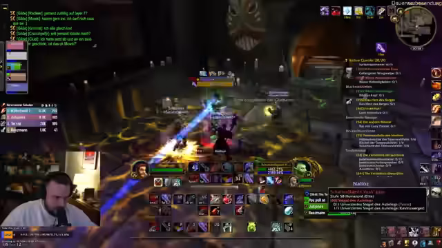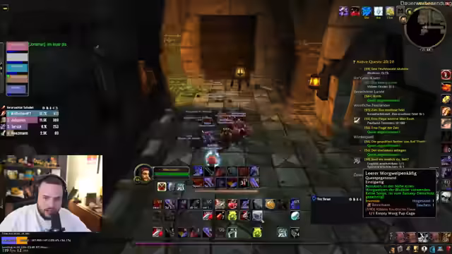 05:43:34Der Stream konzentriert sich auf die Fortschritte in einem World of Warcraft Hardcore-Dungeon. Der Streamer bespricht den Fortschritt bis zum vorletzten Boss, den Fleischer, und bewundert sein UI und Makro-Setup. Strat Living wird als eines der schwierigsten 60er-Dungeons eingestuft. Das Team ist dabei, einen anderen Dungeon zu erkunden, und es gibt technische Diskussionen über das Portieren von Spielern und die Beschaffung von Crafting-Materialien wie Runenstoff. Die Gruppe plant, Kevin in den Dungeon zu porten, während der Streamer Materialien von der Bank holt.