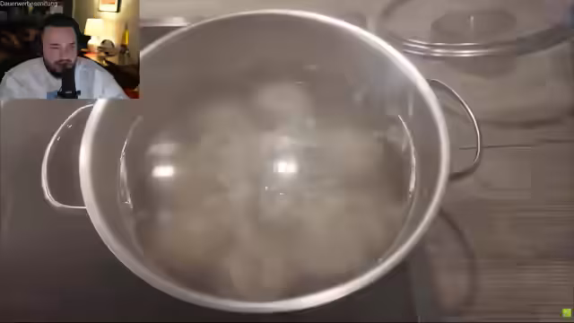02:25:07Die Kamera folgt dem Streamer beim Kochen eines mehrgängigen Menüs, das als Clips für seine Kanäle dienen wird. Er zeigt den Prozess des Kochens, z.B. die Zubereitung von Rotkohl mit einer Spickzwiebel und Hackbraten. Er beschreibt seinen Arbeitsablauf, der neben dem Kochen auch das Sortieren, Benennen und Hochladen der Rohdateien auf den PC und anschließend in die Cloud für seinen Cutter Enno umfasst, um Clips zu erstellen.