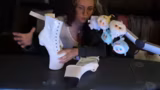00:59:49Währenddessen wird an einem Gießharz-Oberteil gearbeitet, das bereits in der Trocknungsphase ist. Es zeigen sich Komplikationen: Plastikstaub von der Fräsarbeit hat sich auf die noch klebene Gießharz-Oberfläche gelegt und erzeugt uneb Stellen. Zudem wurden zur Fixierung Nägel verwendet, die nun mühsam und zerstörerisch wieder entfernt werden müssen. Das Teil ist sehr fragil und wird eventuell eine zweite Schicht Gießharz benötigen, um es stabiler zu machen.
