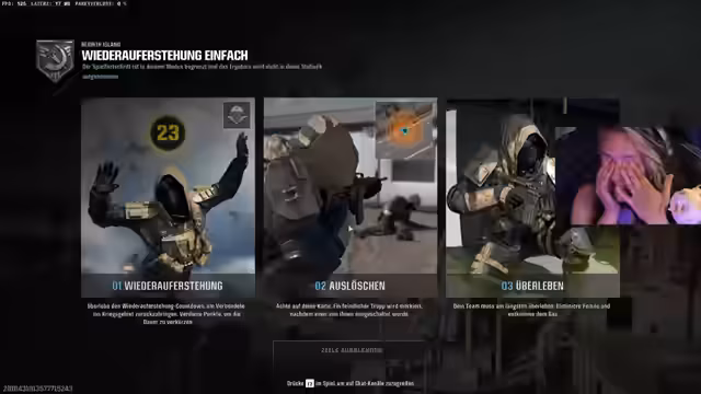 01:10:14Die Streamerin diskutiert den Einsatz von Grenzwaffen wie der Gasmaske und beschreibt die Entscheidung, ein Orbitalgeschoss zu zünden. Ein aktiver Gegner in der Nähe von Industries führt zu kurzzeitigem Alarm, entpuppt sich aber als nicht gefährlich. Ein Moment der Frustration folgt, als sie bemerkt, dass sie keine Schutzplatten mehr hat und diese sich nicht mehr geben kann, was sie wütend und verärgert macht. Sie äußert sich verständnislos über diese Spielmechanik und macht sich über den Counter strike-Lobby-Chat lustig, der sie als Cheater beschuldigt.