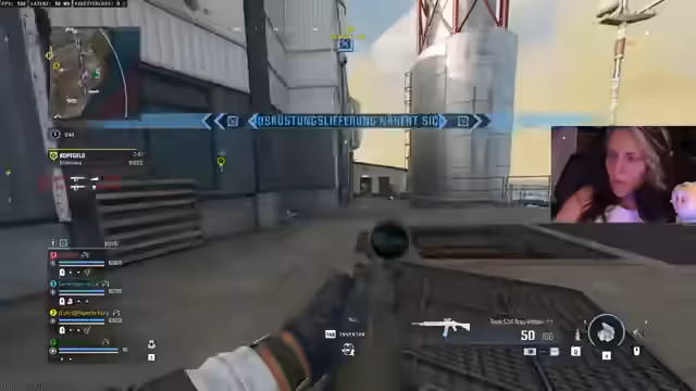 00:44:12Die Game-Session ist von intensiven Fights und technischen Problemen geprägt. Nach ersten Kämpfen um Factory und Prison muss die Streamerin feststellen, dass ihr Profil ausgeloggt wurde, vermutlich durch ein Problem mit Maus oder Steam. Trotz Bugs wie anhaltendem Brennen oder Grafikfehlern führt sie das Team durch weitere Runden. Es geht um Positionierungen, den Kauf von Drohnen, Platten und Waffen, gegen Gegner auf Dächern oder in Containern. Einige Kills gelingen, aber Verfolger und ein kritischer Head-Glitch behindern den Spielverlauf. Sie kommentiert ihre eigene Anspannung und Zittern, wahrscheinlich durch Kaffee und fehlende Nahrungsaufnahme, während sie parallel über gesunde Ernährung spricht.