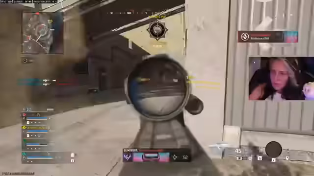 01:19:32Der Gameplay-Anteil shiftet zur Team-Kooperation. Die Streamerin und ihre Mitspielen agieren strategisch, um Gegner zu eliminieren und Platzierungen zu sichern. Sie kommuniziert aktiv über Positionsansagen, Gegnerbewegungen und lootbare Gegenstände wie Self-Revives. Es kommt zu knappen und hektischen Situationen, in denen sie versucht, Teammates zu unterstützen oder aus Gefahrensituationen zu retten, oft mit realem Zeitdruck.