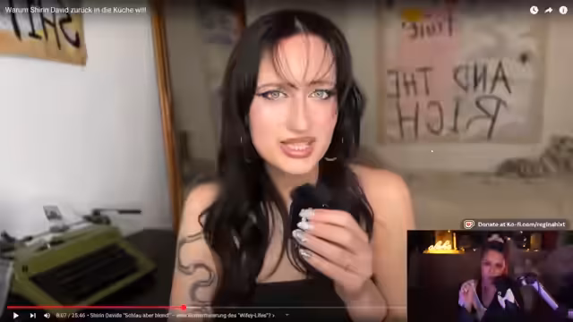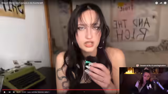 00:09:20Die Streamerin schaut sich ein Video von Mathilda über Shirin David an und diskutiert kontroverse Aussagen der Sängerin über Feminismus und ihren Wandel zu einem mehr traditionellen Frauenbild. Regina kritisiert Shirins Aussagen über 'Princess Treatment' und 'Wifi-Material', die sie als rückständig und oberflächlich empfindet, und betont, dass jede Frau das Recht hat, ihren eigenen Lebensweg zu wählen.