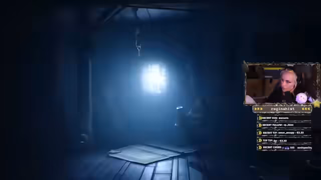 00:55:19Ein besonders nervenaufreibendes Abschnitt erreicht seinen Höhepunkt während einer Verfolgungsjagd, bei der die Streamerin und ihr Begleiter fliehen müssen. Die Szene erfordert exaktes Timing beim Schleichen und Verstecken hinter Objekten, um einem Wächter zu entgehen. Nach mehreren gescheiterten Versuchen schafft es das Duo dank schneller Reaktion, indem sie gerade so in eine Kiste springen und so der Entdeckung entgehen können.