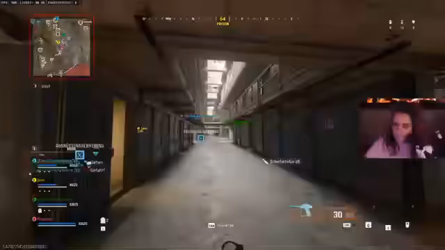 05:51:27Der Stream beginnt mit hektischen Kampfhandlungen. Es geht um die SAUG und C9 Waffen, als Versuche, Gegner zu eliminieren. Die Spieler sind auf einem Dach und im Erdgeschoss aktiv, wobei ein Gegner als ' arschbauer ' beschrieben wird. Nach einem erfolgreichen Selbstmord und einem Schildbruch bleiben noch zwei Gegner übrig. Es werden ständig neue Gegner aus verschiedenen Richtungen gemeldet und bekämpft. Der Druck durch das Angreifen und Verteidigen in der sogenannten ' Zone ' ist extrem hoch.
