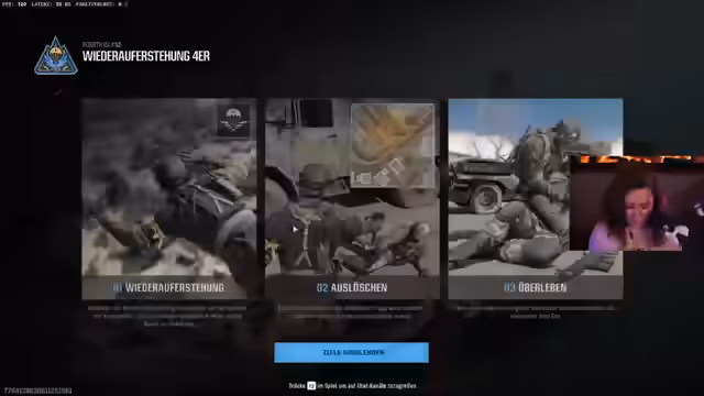 03:24:13Die Streamerin kehrt zum Spielgeschehen zurück, ist jedoch von ihrer Leistung unzufrieden. Sie beschreibt, dass sie Konzentrationsschwierigkeiten hat und sich im Spiel oft „Arsch“ (schlecht) positioniert. Sie äußert Frustration über ihre Fehlentscheidungen und das Gefühl, von Gegnern überrascht zu werden, obwohl sie deren Schritte hört. Sie vermutet, dass ein Perk oder ein Cheater ihre Wahrnehmung beeinträchtigt. Immer wieder gerät sie in Feuergefechte und wird besiegt, was sie zu emotionalen Reaktionen wie „Fuck, fuck, fuck!“ veranlasst. Ihremsgs zeigen eine Mischung aus Ehrgeiz und einer selbstkritischen Auseinandersetzung mit ihren spielerischen Schwächen.