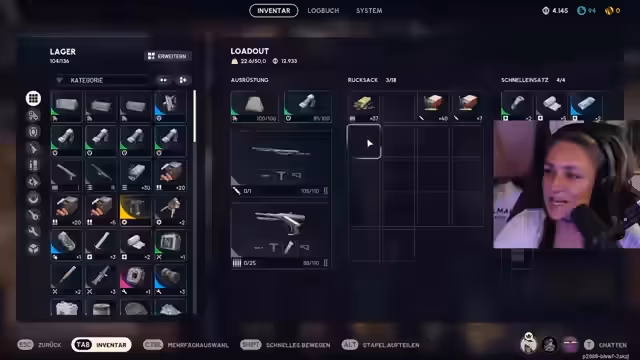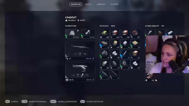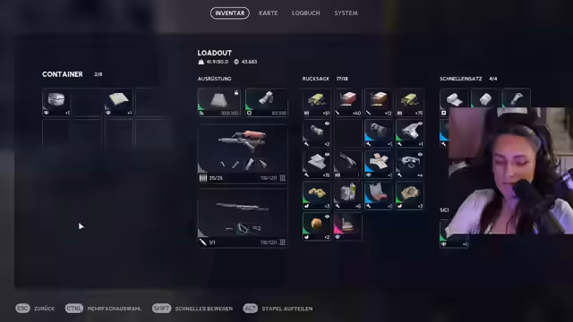00:46:06Nach den frustrierenden Gefechten und dem frühen Ausscheiden kommt im Chat das Thema Fast Food auf, was sofortige Gelüste auf McMuffins und Big Macs weckt. Die Streamerin gibt zu, dass sie normalerweise kein großer Fan von McDonalds ist, aber in diesem Moment einen großen Fast-Food-Burger essen würde. Für die nächste Runde in ARC RAIDERS wird beschlossen, mit einem vollen Loadout und zusätzlichen Granaten zu starten, um besser vorbereitet zu sein. Es wird über die Effektivität von Haftgranaten gesprochen und die Notwendigkeit, verschiedene Taktiken auszuprobieren. Neue Zuschauer werden begrüßt, die durch ARC RAIDERS auf den Kanal aufmerksam geworden sind. Die Munitions- und Schildausrüstung wird überprüft, wobei festgestellt wird, dass leichte Schilde am Anfang des Spiels kaum Schutz bieten und ein schnelles Aufleveln für bessere Schilde notwendig ist.