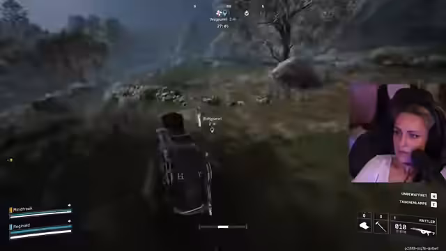 09:13:32Die Gruppe startet in einer dunklen Umgebung, die sich als nur der Raum herausstellt. Ihr Ziel ist es, Pilze in einer Schlucht zu finden und die Türme zu erkunden. Sie werden jedoch sofort von Raketendrohnen angegriffen, was zu Frustration über das ständige Nachladen der Waffen führt. Trotz der Ablenkungen finden sie Pilze an einem Baum und stellen fest, dass der Spot zuvor schon geerntet wurde. Ein Spieler erinnert sich an einen früheren Sturz und ist entschlossen, es diesmal besser zu machen. Die Pilze werden sicher verstaut, während eine Raketendrohne in der Nähe fliegt.
