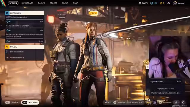 07:15:35Nachdem die Pilzsuche auf der aktuellen Karte erfolglos war, wird ein Wechsel zur 'Blue Gate' Karte in Betracht gezogen, in der Hoffnung, dort die benötigten ultragemütlichen Kissen und Pilze zu finden. Die Streamerin erinnert sich, dort schon einmal einen Pilz gefunden zu haben, was die Chancen im Vergleich zur 'Pilz-Map' erhöht, die sich als enttäuschend erwiesen hat. Während ihr Mitspieler sein Loadout vorbereitet, gibt es eine kurze Werbepause, und die Streamerin interagiert mit dem Chat. Sie äußert ihre Ermüdung nach einem langen Tag am PC, aber auch ihre Freude am Spiel, trotz der frustrierenden Momente. Es wird erneut über das langsame Leveling diskutiert und die Schwierigkeit, schnell Fortschritte zu machen. Die Gruppe macht sich bereit für die nächste Runde, mit der Hoffnung, endlich die benötigten Ressourcen zu finden und die Missionen erfolgreich abzuschließen.