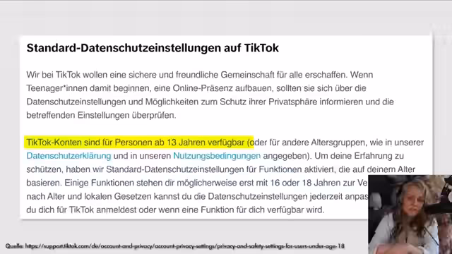 06:28:14Im Stream wird die elterliche Verantwortung gegenüber Kindern im digitalen Raum als absolut und uneingeschränkt dargestellt. Die Sprecherin beschreibt, sie würde einem Kind sofort das Handy wegnehmen und Inhalte kontrollieren, bevor es selbst etwas löschen kann. Die Begründung liegt in der angenommenen Verantwortung für die Sicherheit des Kindes, um es vor Gefahren wie Deepfakes und sexualisierter Gewalt zu schützen, die zu psychischen Schäden führen können. Diese Kontrolle wird als primäre Pflicht der Eltern betont, die Vorrang vor der Privatsphäre des Kindes habe, da Kinder die Gefahren des Internets nicht kennen.