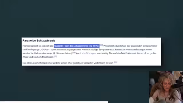 02:39:40Es wird ein Widerspruch in den Aussagen einer anderen Person namens Mauki aufgedeckt: Einerseits behauptete sie öffentlich, an Schizophrenie zu leiden und in einer geschlossenen stationären Einrichtung gewesen zu sein. Andererseits soll sie im Gespräch mit Anni erklärt haben, sie sei nicht schizophren. Eine Überprüfung der öffentlichen Streams und Podcasts ergibt, dass Mauki nach dem Gespräch mit Anni nie mehr von einer Therapie oder einer Überwindung dieser Diagnose sprach, was die Glaubwürdigkeit der Aussagen in Frage stellt.