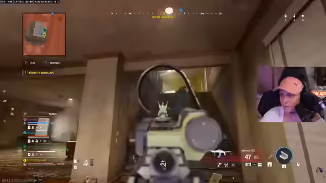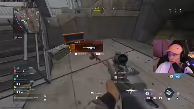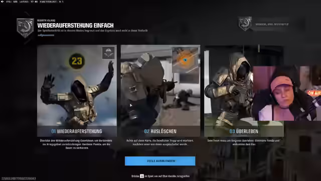 01:17:41Der Streamer ist sichtlich frustriert über die eigene Leistung im Spiel und kann in einer Rebirth-Lobby keine 30 Kills erreichen. Sie beschreibt ihr Gameplay als 'scheiße', trotz Lobby-Bots, und findet es 'peinlich'. Dennoch wird versucht, sich zu motivieren, um das gesteckte Ziel von 30 Kills zu erreichen, und es werden Loadouts und Waffen wie die 'Dresden' besprochen, die aktuell als Meta gelten.
